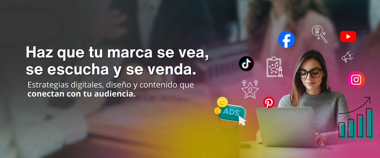 Impulsamos marcas con estrategias creativas y efectivas. Desde redes sociales hasta diseño gráfico y publicidad online, conectamos tu negocio con el público correcto, generando visibilidad, engagement y resultados reales.